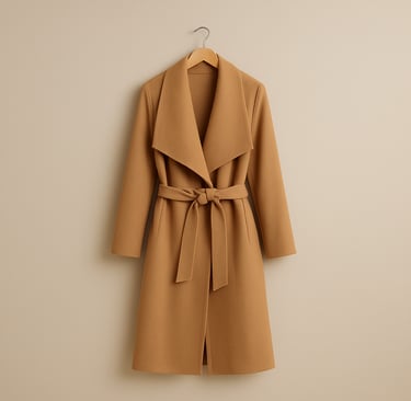 Silhueta Lisonjeira: A ausência de fechos ou botões grandes concentra o foco no cinto, que permite apertar na cintura e criar uma silhueta ampulheta. Este pequeno detalhe é o que transforma o casaco numa peça de alta-costura, fazendo-a sentir-se elegante e confiante.